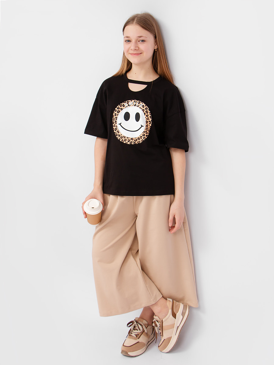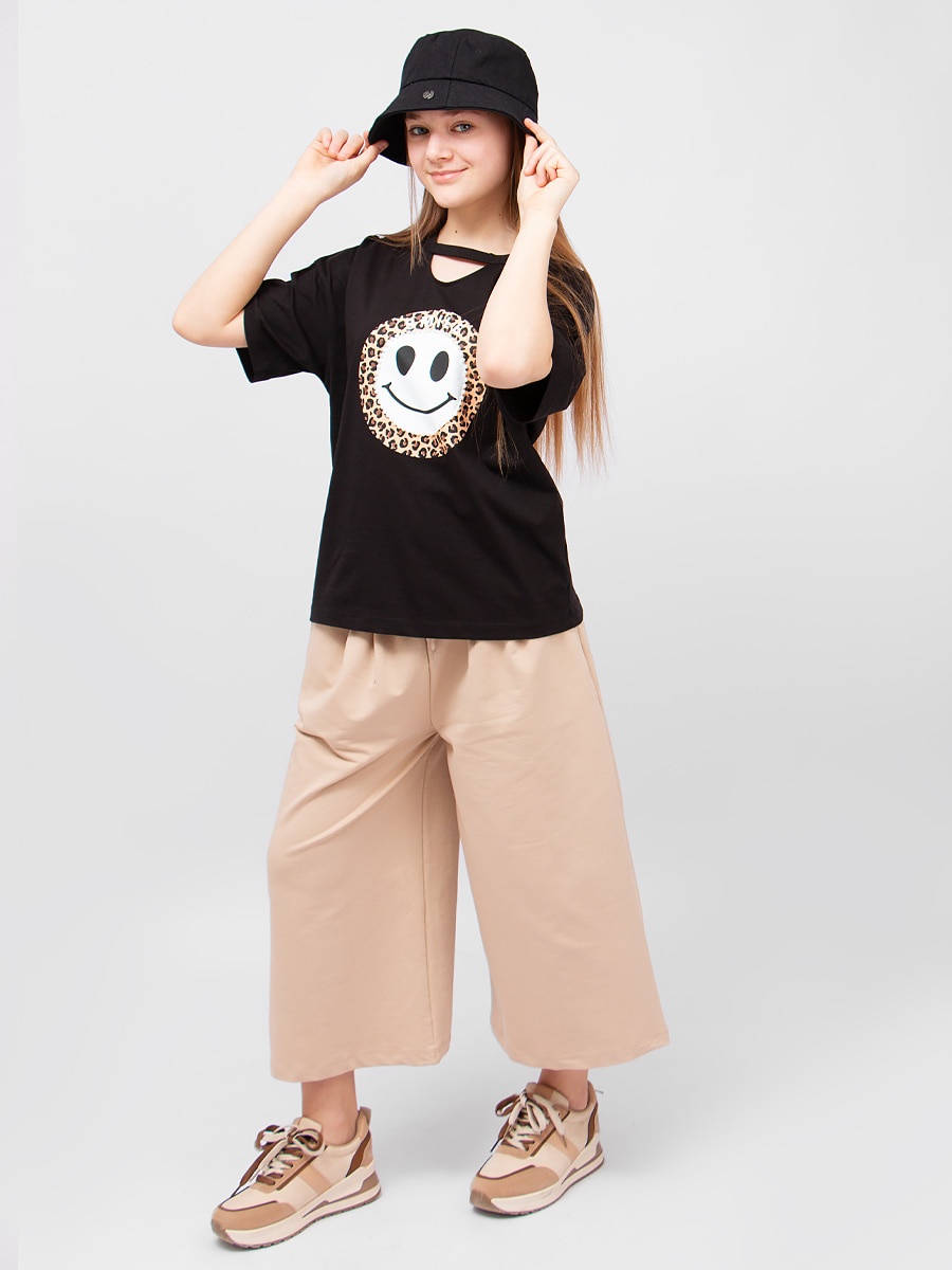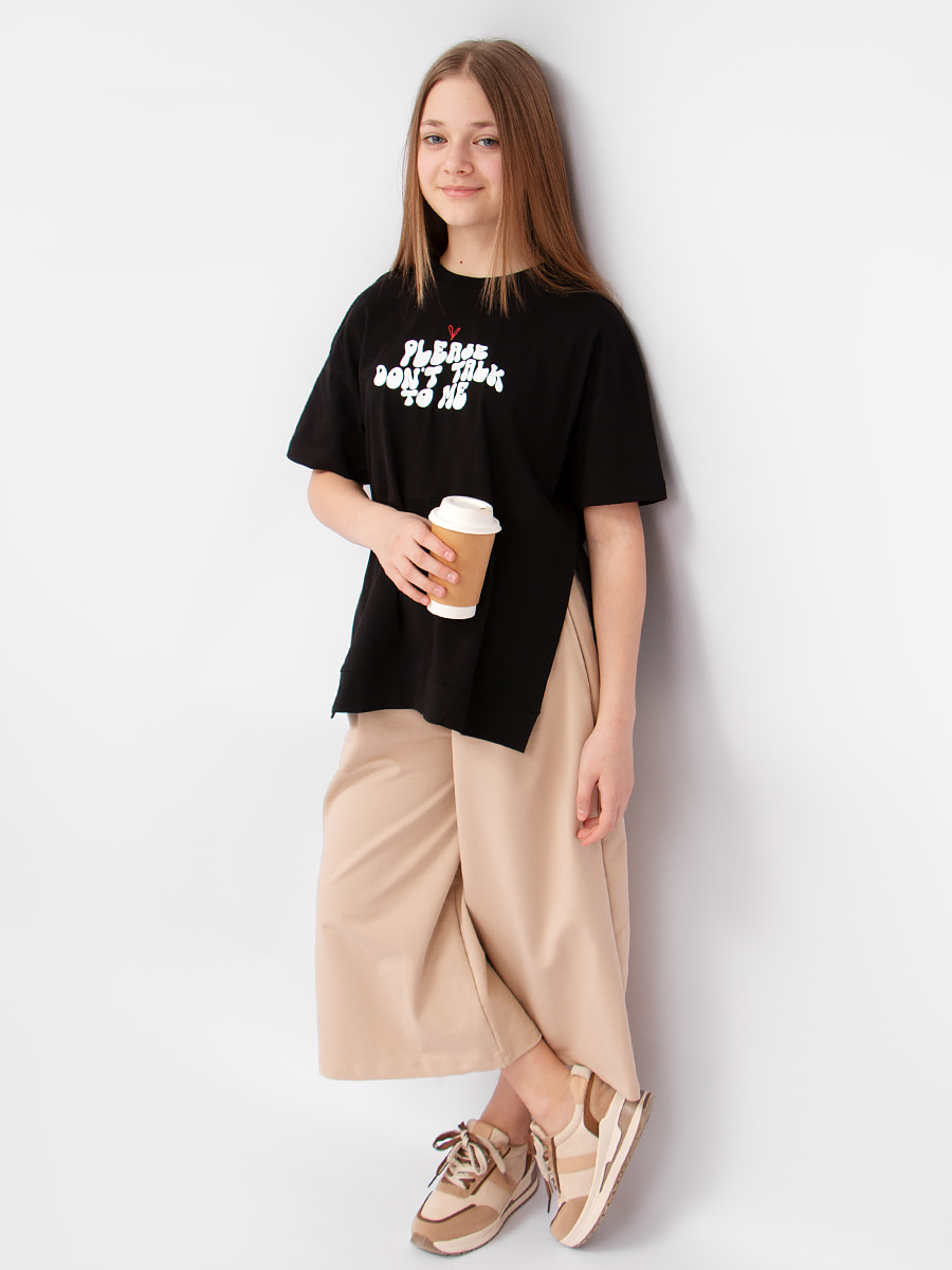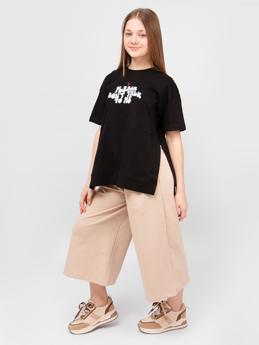 Кюлоты для девочки Соль&Перец в стиле спорт-шик. Однотонные кюлоты на широкой резинке с кулиской и боковыми карманами выполнены из трикотажа - футер 2-х нитка.