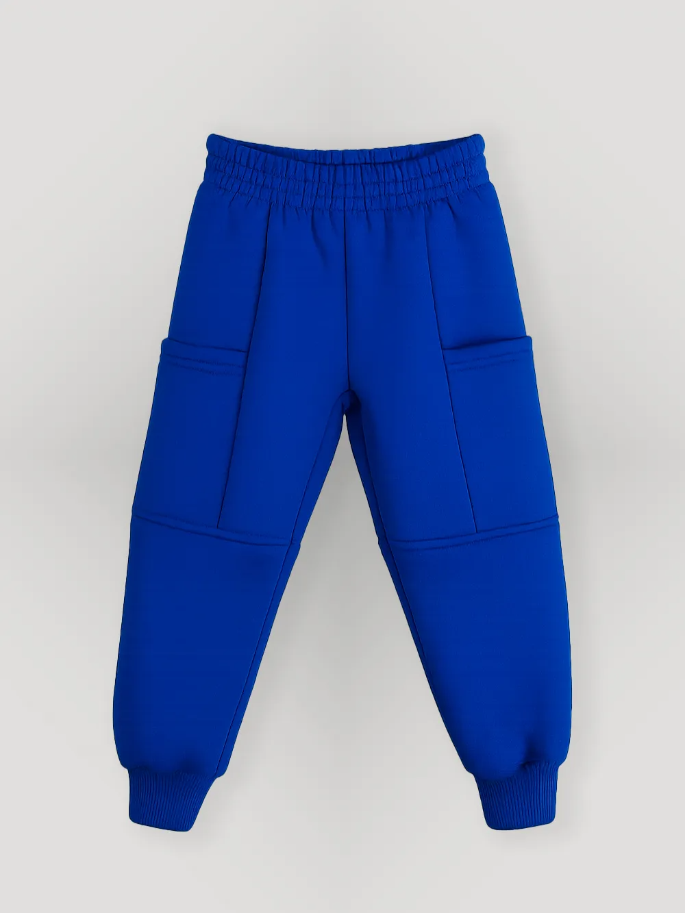 Особенность модели — объёмные накладные карманы по бокам, которые делают брюки более функциональными и добавляют современный, слегка «карго» стиль. Широкий эластичный пояс обеспечивает удобную посадку, а манжеты по низу фиксируют штанину.