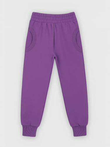 Модель с актуальным силуэтом: средняя посадка, слегка зауженные книзу штанины, мягкие манжеты и широкий пояс на резинке. Смотрятся стильно, сидят идеально, не сковывают движений.