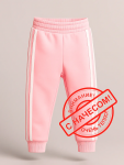 Широкий эластичный пояс обеспечивает комфортную посадку, манжеты по низу фиксируют штанину и не дают ей задираться. Контрастные лампасы визуально вытягивают силуэт и придают брюкам более спортивный, современный вид.