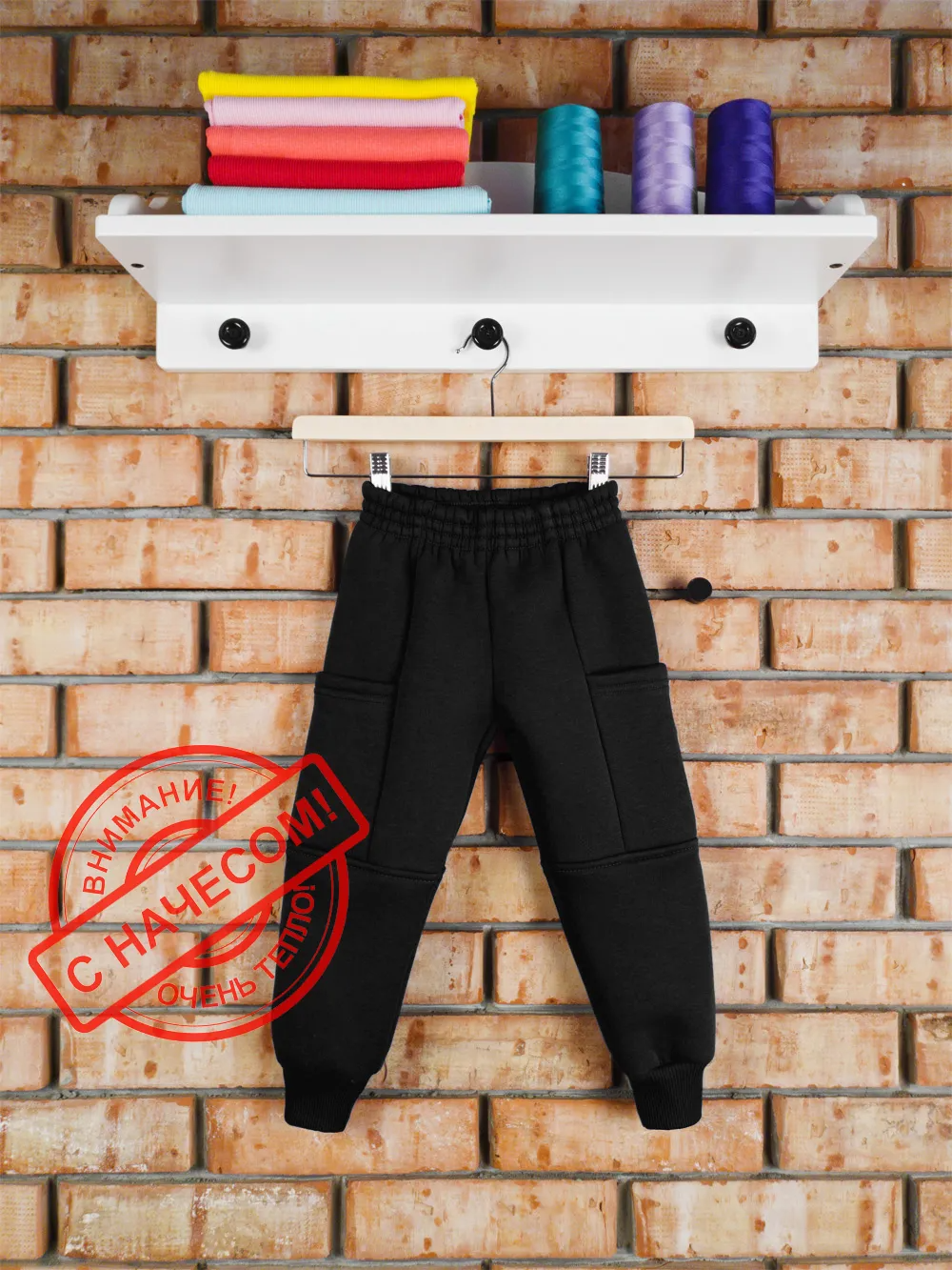 Модель оснащена объёмными накладными карманами по бокам — это не только удобно, но и придаёт брюкам стильный акцент в стиле «карго». Широкий эластичный пояс обеспечивает комфортную посадку, а манжеты по низу фиксируют штанину и помогают удерживать тепло.