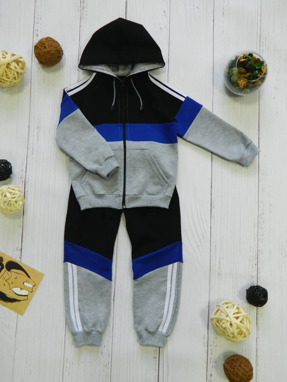 Стильный спортивный костюм, созданный для активных и энергичных детей. Он сочетает в себе удобство, практичность и яркий современный дизайн, который точно понравится вашему ребёнку.