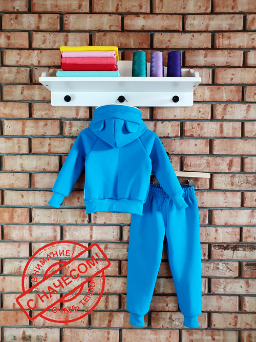 Костюм пошит из теплого и мягкого футера трехнитки с начесом. Футер 3-нитка с начесом, 70% хлопок + 30% п/э