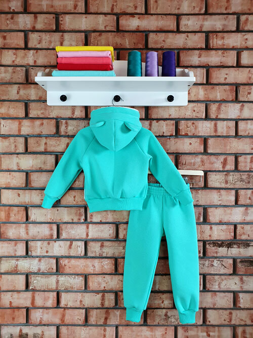 Костюм пошит из теплого и мягкого футера трехнитки с начесом. Футер 3-нитка с начесом, 70% хлопок + 30% п/э