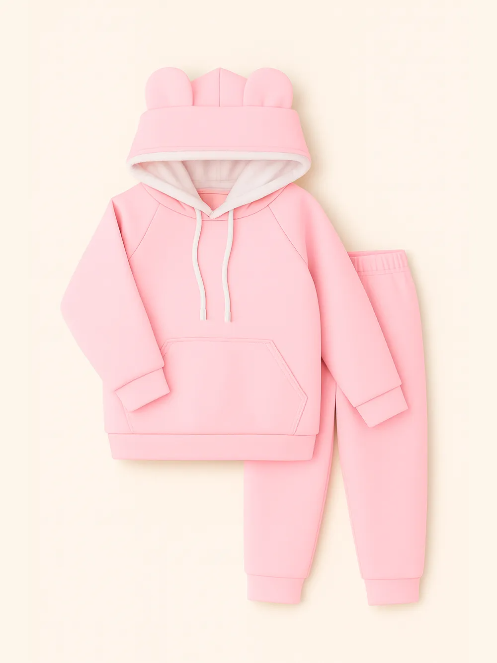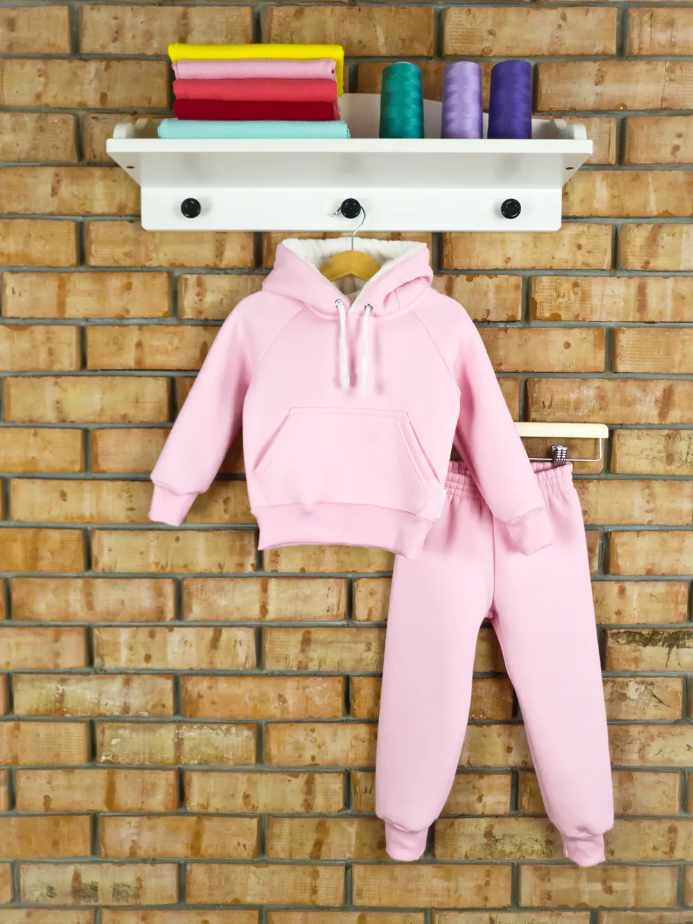 Костюм выполнен из мягкого, тёплого футера трёхнитки с начёсом — идеальное решение для прогулок в прохладную погоду и комфортных повседневных образов.