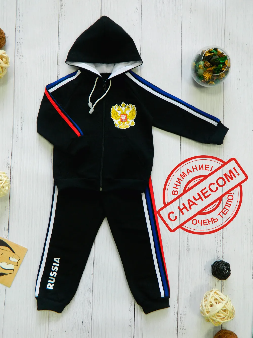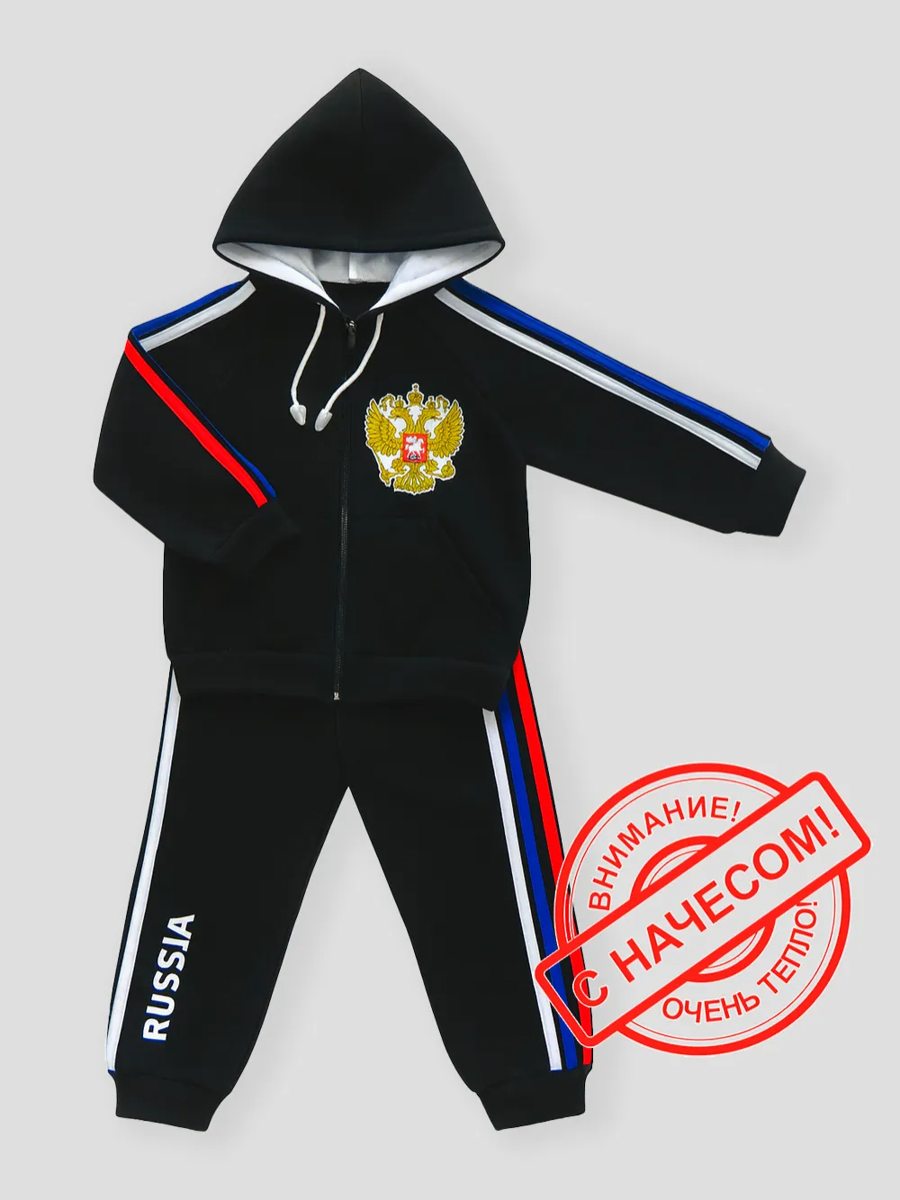 Стильный спортивный костюм, который сочетает комфорт, практичность и яркий патриотичный дизайн. Он создан для активных детей и идеально подходит для прогулок, поездок, занятий спортом и повседневной носки.