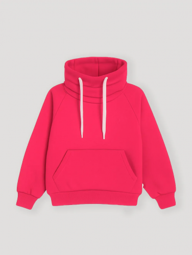 Горловина выполнена в виде мягкого воротника-трубы, который защищает от ветра и добавляет изделию оригинальности. Спереди расположен практичный накладной карман, а рукава и низ оформлены аккуратными манжетами.