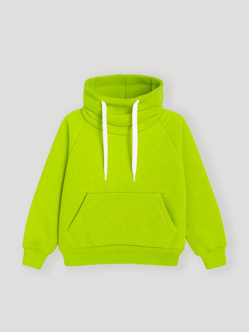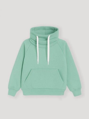 Горловина выполнена в виде мягкого воротника-трубы, который защищает от ветра и добавляет изделию оригинальности. Спереди расположен практичный накладной карман, а рукава и низ оформлены аккуратными манжетами.