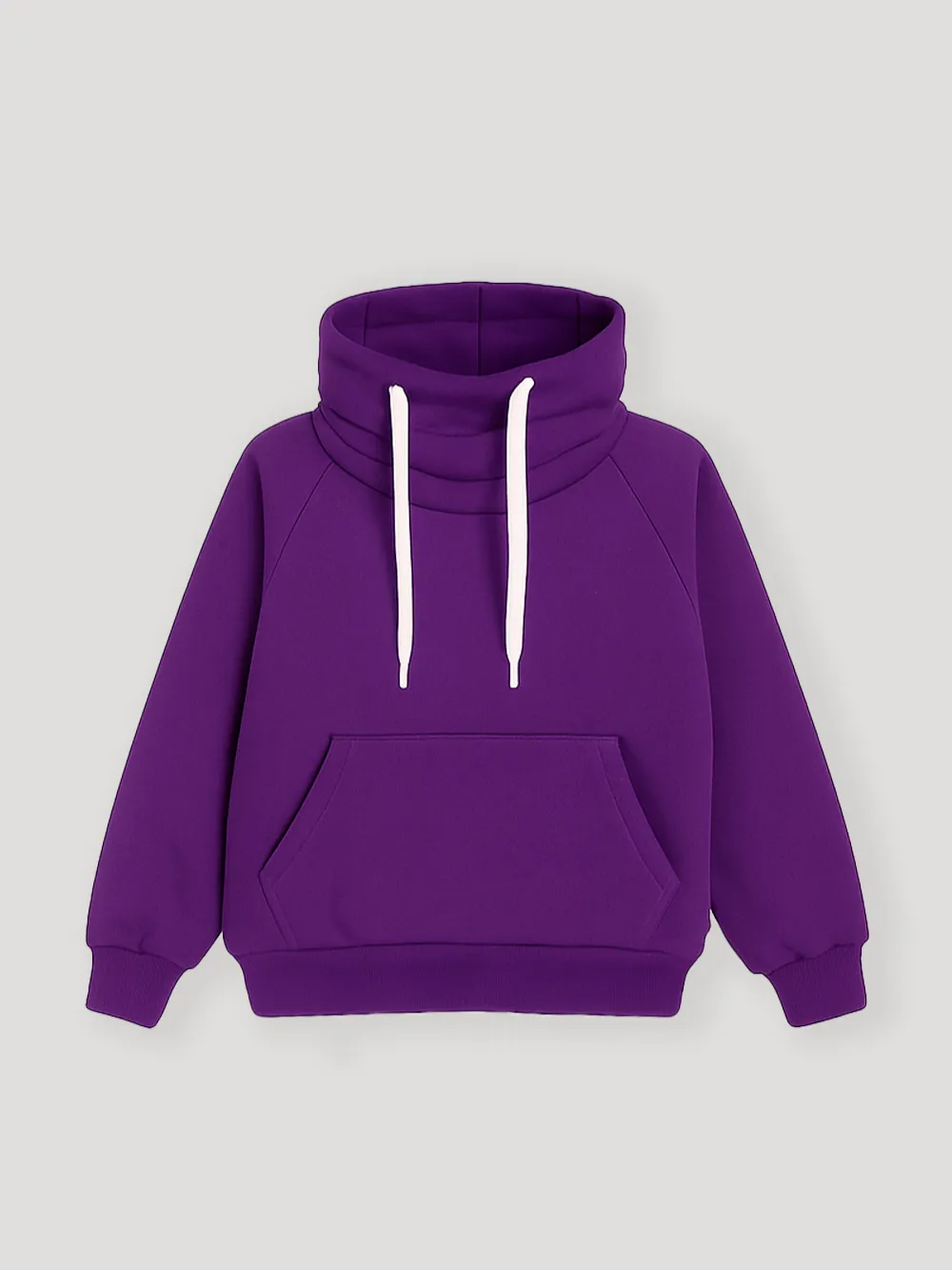 Горловина выполнена в виде мягкого воротника-трубы, который защищает от ветра и добавляет изделию оригинальности. Спереди расположен практичный накладной карман, а рукава и низ оформлены аккуратными манжетами.