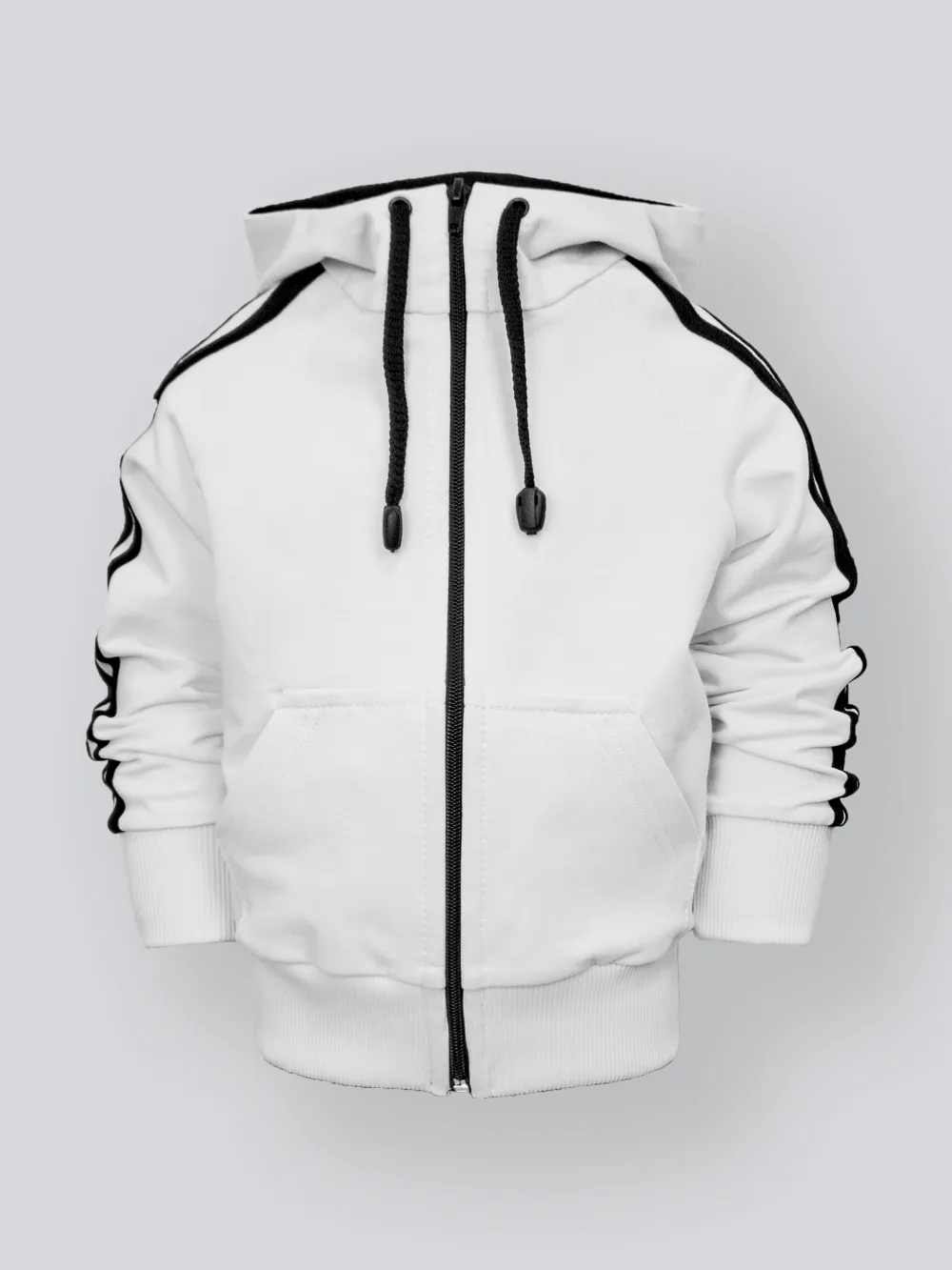 Практичные накладные карманы — идеальное место для рук и маленьких сокровищ. Контрастные лампасы на рукавах придают толстовке динамичный спортивный характер и делают её визуально ещё более эффектной.