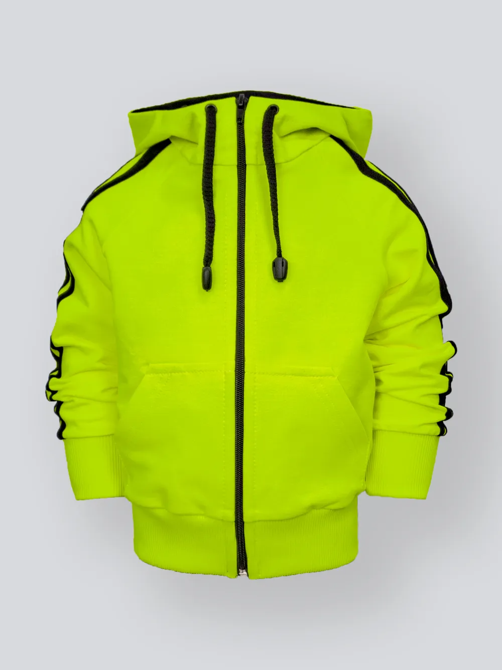 Практичные накладные карманы — идеальное место для рук и маленьких сокровищ. Контрастные лампасы на рукавах придают толстовке динамичный спортивный характер и делают её визуально ещё более эффектной.