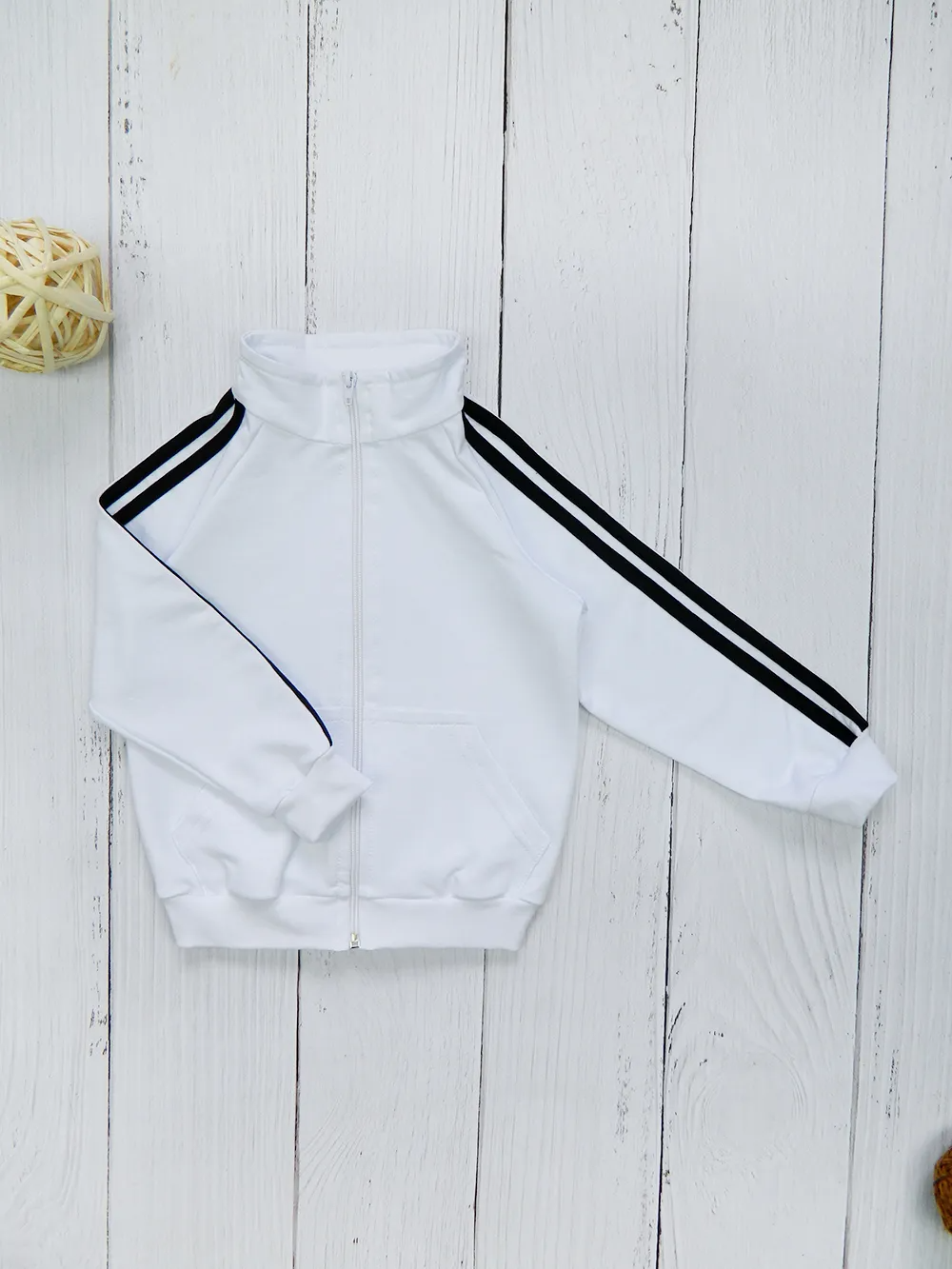 Практичные накладные карманы удобны для рук и мелочей, а контрастные лампасы на рукавах добавляют спортивного характера и делают толстовку особенно стильной.