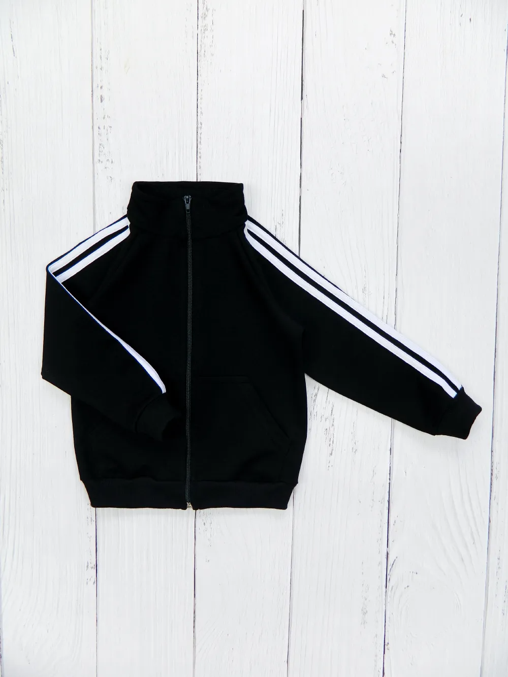 Практичные накладные карманы удобны для рук и мелочей, а контрастные лампасы на рукавах добавляют спортивного характера и делают толстовку особенно стильной.