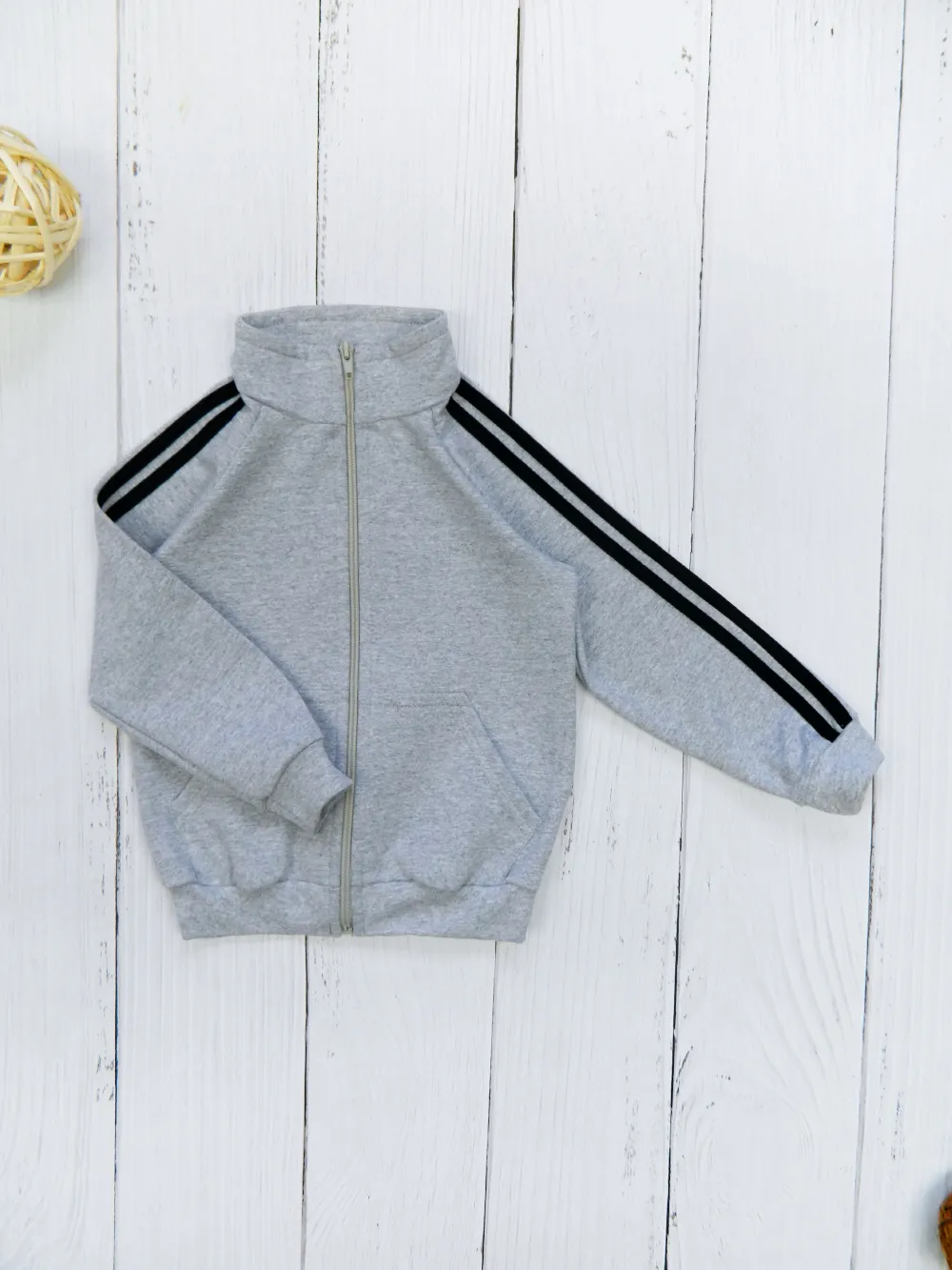 Практичные накладные карманы удобны для рук и мелочей, а контрастные лампасы на рукавах добавляют спортивного характера и делают толстовку особенно стильной.
