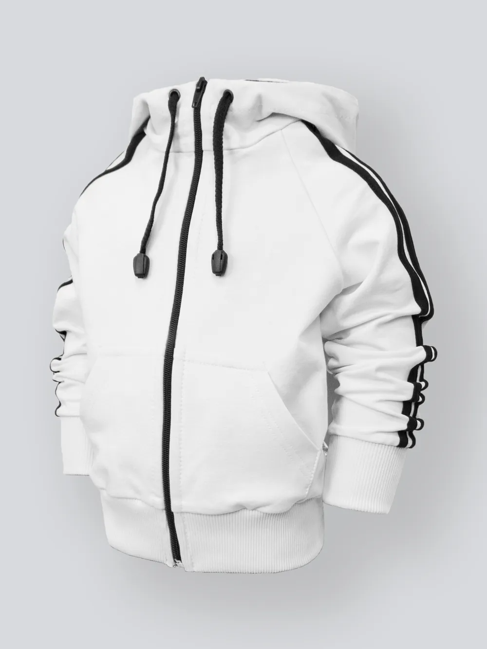 Практичные накладные карманы — идеальное место для рук и маленьких сокровищ. Контрастные лампасы на рукавах придают толстовке динамичный спортивный характер и делают её визуально ещё более эффектной.