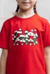 Пижама детская состоит из футболки свободного прилегания и прямых брюк. Футболка с круглым вырезом, на груди веселый праздничный принт. Брюки на резинке.