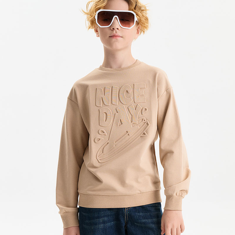 Состав: 100%хлопокОписание: Свитшот из материала футер-петля. Манжеты и низ изделия из рибаны. Толстовка украшена выпуклым выдавленным принтом - надписью. Перевод надписи "nice day" - прекрасный день. В составе ткани преобладает высококачественный хлопок — спортивная кофта приятна на ощупь и прекрасно пропускает воздух. Базовую тонкую кофту можно носить круглый год. Широкая размерная сетка подойдет как для малыша так и для подростка.