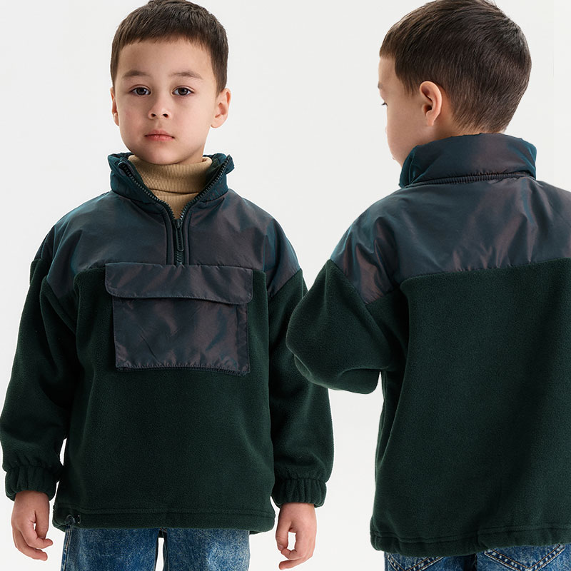 Состав: 100%полиэстер, вставка: 60%нейлон 40%полиэстерОписание: Детский анорак для мальчика. Куртка выполнена в сочетании двух материалов: флиса и гладкой курточной ткани. Это супермодный тренд. Кокетка и карман из курточной ткани — максимум практичности: ребенок не промокнет и карман не замарается при частом использовании. Анорак оверсайз-силуэта со спущенным плечом подарит ребёнку комфорт и свободу движения. Высокий воротник-стойка защищает от холода и ветра. По переду застёжка на короткую молнию — актуально в этом сезоне. Тканевый стоппер защищает подбородок от зажима молнией. В манжетах рукавов комфортная широкая резинка. По низу изделия предусмотрена утяжка для регулировки объема. По переду объёмный карман-портфель из курточной ткани с клапаном, застегивается на липу (велькро). Детский анорак однотонный, без принта. За ним легко ухаживать. Оба материала состоят из полиэстера — куртка тёплая, лёгкая, мягкая, просто стирается и быстро сохнет, не выгорает и не скатывается, сохраняет великолепную форму надолго. Анорак выполнен в трендовом зеленом цвете . В линейке представлены следующие размеры: 1 (86): 2 (92): 3 (98): 4 (104): 5 (110): 6 (116): 7 (122): 8 (128): 9 (134): 10 (140): 11 (146). Прекрасная куртка на мальчика дошкольного и младшего школьного возраста, а также подростка. Подходит для детского сада, прогулок, активного отдыха, спорта. Отличная куртка на осень и весну (демисезон), а также прохладное лето. Она может заменить ветровку в начале осени или конце весны, а зимой послужит тёплым средним слоем одежды. Прекрасный подарок сыну, внуку, племяннику или брату на День рождения и любой другой праздник.