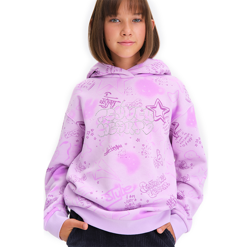 Состав: 72%хлопок 28%полиэстерОписание: Модное худи для девочки из тонкого футера с мягким начесом — лёгкое и тёплое, идеально для прохладных дней. Модель умеренного объёма удобно сидит и не сковывает движений. Уникальная деталь — надпись из блестящих металлических страз, которая делает худи эффектным и выделяющимся. Низ рукавов и сам низ изделия оформлены манжетами из рибы — они хорошо тянутся и сохраняют форму. Капюшон без утяжек, с подкладкой из мягкой ткани, комфортен и не мешает. Это худи — отличный выбор для тех, кто ценит модный, стильный и современный образ. Носить его — значит выглядеть круто и уверенно каждый день! Не забывайте о выборе правильного размера. Используйте таблицу размеров на фотографии, чтобы выбрать подходящий вариант. Обратите внимание, что цвет товара на экране вашего устройства может отличаться от реального.