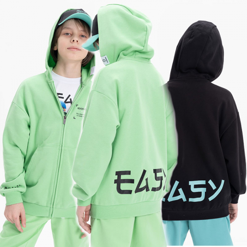 Состав: 87%хлопок 13%полиэстерОписание: Трикотажный бомбер для мальчика. Модель выполнена из плотного футера-петля. Изделие прямого силуэта, объем оверсайз. Манжеты рукавов и низ толстовки выполнены и рибаны. По переду накладные карманы. На спине принт с надписью. Перевод надписи: "easy" - легко. Спереди высокий резиновый текстовый принт и нашивка. Перевод надписей "Good choice! The character you chose is ready to everything" - хороший выбор! Выбранный персонаж готов ко всему. Рукава тоже декорированы принтом с надписью "digital" - диджитал. На капюшоне предусмотрена регулировка объема утяжкой. Зипка застегивается на молнию. Кофта спортивная имеет широкий размерный ряд, который подойдет как малышам так и подросткам. Подходит для круглогодичного ношения весной, летом, осенью и зимой.