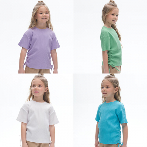 Состав: 58%хлопок 37%вискоза 5%эластанОписание: Футболка из модной ткани в рубчик для девочки. Благодаря преобладающим в составе хлопку и вискозе ткань изделия дышит и приятна на ощупь. Эластан помогает сохранять форму. По бокам модели кулиски с тесьмой — актуальный тренд. С их помощью можно делать стильную сборку с одной или двух сторон. Такая футболка хорошо сочетается с различными шортами, леггинсами, кюлотами или джоггерами.