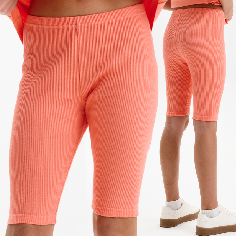 Состав: 95%хлопок 5%эластанОписание: Трикотажные велосипедки из трикотажа в рубчик с высокой посадкой. Широкая тунельная резинка на поясе.