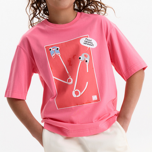 Состав: 100%хлопокОписание: Футболка для девочки умеренного объема. Выполнена из 100% хлопка. Эластичная рибана на вырезе горловины гарантирует, что футболка будет легко надеваться и сниматься, не теряя при этом своей формы.