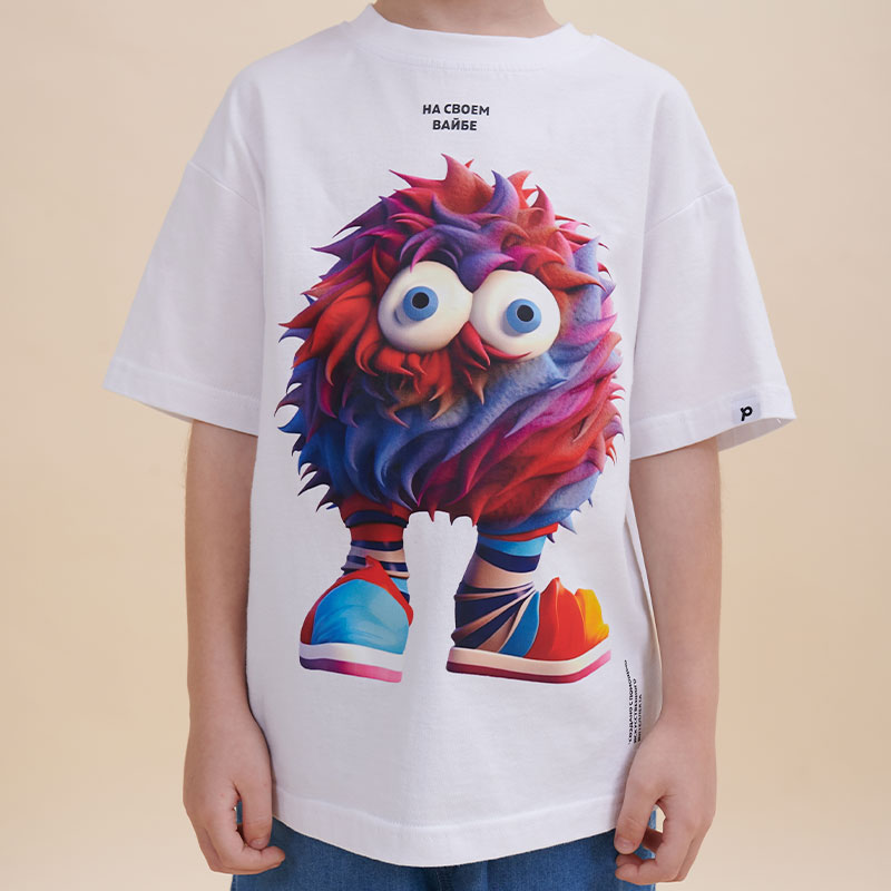 Состав: 100%хлопокОписание: Детская футболка оверсайз. Комфортный джемпер свободного силуэта со спущенным плечом не будет стеснять движений ребёнка. Объёмная майка подарит ощущение комфорта и уюта. Вырез горловины отделан эластичной рибаной (ткань в рубчик) — она прекрасно держит форму, при этом ребёнку удобно надевать и снимать футболку. Модель неприхотлива в уходе. Главная фишка футболки — яркий стильный принт, изображающий персонажа, сгенерированного нейросетью (искусственным интеллектом). Это супермодный тренд! Футболка с прикольным принтом по переду выполнена из 100% высококачественного хлопка — изделие мягкое и воздухопроницаемое, что позволяет коже ребёнка свободно дышать. Принт эластичный и стойкий — без проблем переносит многочисленные стирки, не теряя своей яркости. На принте изображён смешной яркий пушистый чудик в полосатых носках + надписи "на своём вайбе" и "создано с помощью искусственного интеллекта". Футболка оверсайз белая универсальна, подходит и для девочек, и для мальчиков. Как для малышей дошкольного и младшего школьного возраста, так и для подростков. Модель идеальна для детского сада, спорта, прогулок, отдыха, а также в качестве домашней одежды. В линейке представлены следующие размеры: 1 (86): 2 (92): 3 (98): 4 (104): 5 (110): 6 (116): 7 (122): 8 (128): 9 (134): 10 (140): 11 (146). Белые футболки подходят для носки летом, осенью и весной (демисезон), зимой в качестве среднего слоя одежды. Легко сочетается с различными брюками, джинсами, юбками, легинсами и шортами. Футболка с принтом оверсайз — стильный и красивый подарок сыну, дочери, внуку или внучке на любой праздник. Выбирайте нужный размер по таблице размеров на фото. Цвет товара на экране вашего устройства может отличаться от цвета изделия вживую.