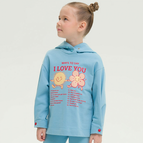 Состав: 100%хлопокОписание: Худи оверсайз из футера для девочки. 100% хлопок в составе – ткань мягкая, дышащая, приятная на ощупь. Прямые широкие рукава, спущенное плечо и свободный крой – настоящий трендовый оверсайз. Теплый и удобный капюшон – застегивается на горловине на одну или две кнопки на выбор. Объем рукава регулируется кнопками – легко и просто менять одним движением. Яркий цветной принт спереди для позитивного настроения. Худи составляет гармоничный дуэт с джоггерами или велосипедками. Идеально для активного детства – на каждый день, для учебы и занятия спортом.