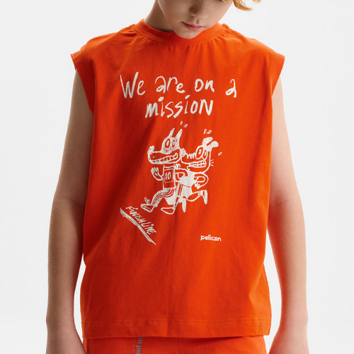 Состав: 100%хлопокОписание: Майка для мальчика прямого силуэта увеличенного объема, с чуть расширенным плечевым поясом, с углубленной проймой, удлиненная. Вырез горловины обработан эластичной тканью — она прекрасно держит форму, не растягивается, при этом ребёнку удобно надевать и снимать майку. Перевод: У нас миссия - заставить бегунов БЕЖАТЬ!