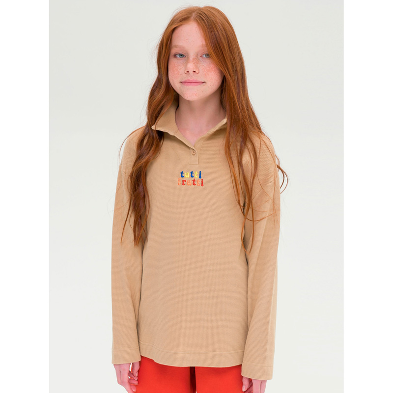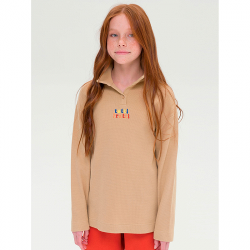 Состав: 95%хлопок 5%эластанОписание: Лонгслив-поло для девочек. Приятный на ощупь, с большим содержанием хлопка в составе, гигроскопичный и простой в уходе вафельный трикотаж. Свободный силуэт со спущенным плечом для комфорта движений. Воротник сделан из основной ткани, планка у горловины на пуговице. Цветная вышивка спереди – фишка модели. Широкая подгибка рукавов и низа – актуальный тренд на увеличенные отделочные детали кроя. Лонгслив подходит на каждый день, для активного образа жизни, идеален для пляжного сезона.