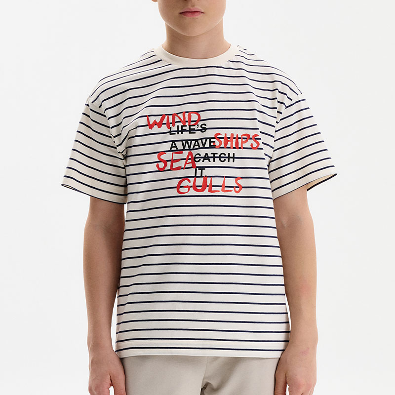 Состав: 100%хлопокОписание: Футболка для мальчика свободного кроя - это идеальный выбор для активного ребенка. Вырез горловины обработан эластичной тканью — она прекрасно держит форму, не растягивается, при этом ребёнку удобно надевать и снимать футболку.По переду принт с надписями. Перевод принта "wind, ships, sea, gulls" - ветер, корабли, море, чайки, "life's a wave catch it" - жизнь это волна, ловите ее. Спортивная полосатая футболка подходит как для малышей в детский сад так и для подростков. Тельняшка с коротким рукавом подходит для любого времени года, её можно носить как летом, так и в холодное время года в качестве среднего слоя одежды. Помните о правильном уходе за изделием: рекомендуется стирать при температуре не выше 30 °C, без предварительного замачивания, с изнанки. Это поможет сохранить качество и цвет футболки на длительное время.