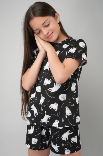 Детская пижама из хлопка подойдёт для сна, отдыха и уютных вечеров. Футболка и шорты из лёгкого трикотажа — практичный и симпатичный выбор для девочки подростка.