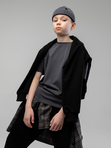 Материал футер двухнитка Состав 92% хлопок 8% лайкра Свитшот для детей школьного возраста. Свитшот свободного силуэта с втачным рукавом с манжетой. Горловина-стойка выполнена из рибаны. Уровень низа полочки короче уровня низа спинки. В боковых швах разрезы.