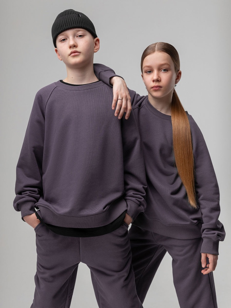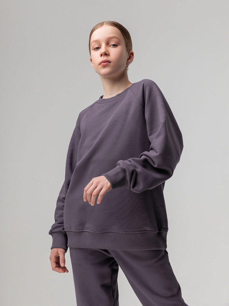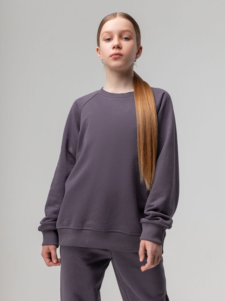 Материал футер трехнитка петля Состав 80% хлопок 20% полиэстер Свитшот для детей школьного возраста. Свободного силуэта с втачным рукавом реглан с притачной манжетой, с притачным поясом по низу изделия. Горловина округлой формы. Состав: футер трехнитка петля 80% хлопок 20% полиэстер