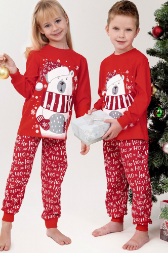 Детская новогодняя пижама с брюками выполнена из натурального 100% хлопка. Свободный крой не сковывает движений и позволяет ребенку всегда оставаться активным, а праздничный принт Мишки создает уютную атмосферу и поднимает настроение. Трикотажная пижамка для мальчиков и девочек станет отличным подарком на Новый год и Рождество.