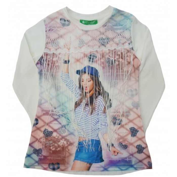 Удобная модель из мягкого трикотажа, яркий стильный рисунок, спереди отделка из тонкого кружева с бахромой, внутренняя часть рисунка отделана двойной нитью для комфорта ребенка, понравится девочкам.