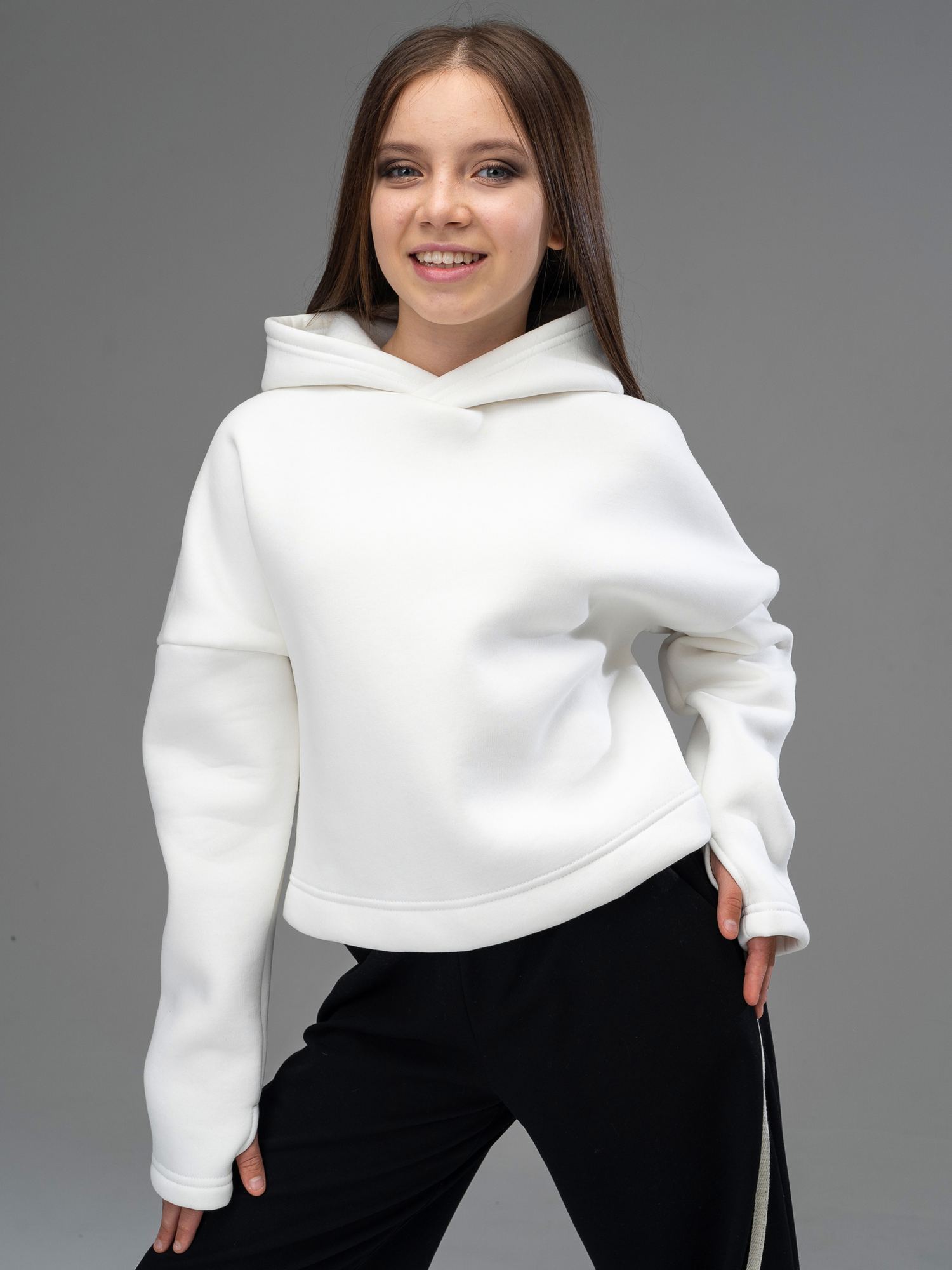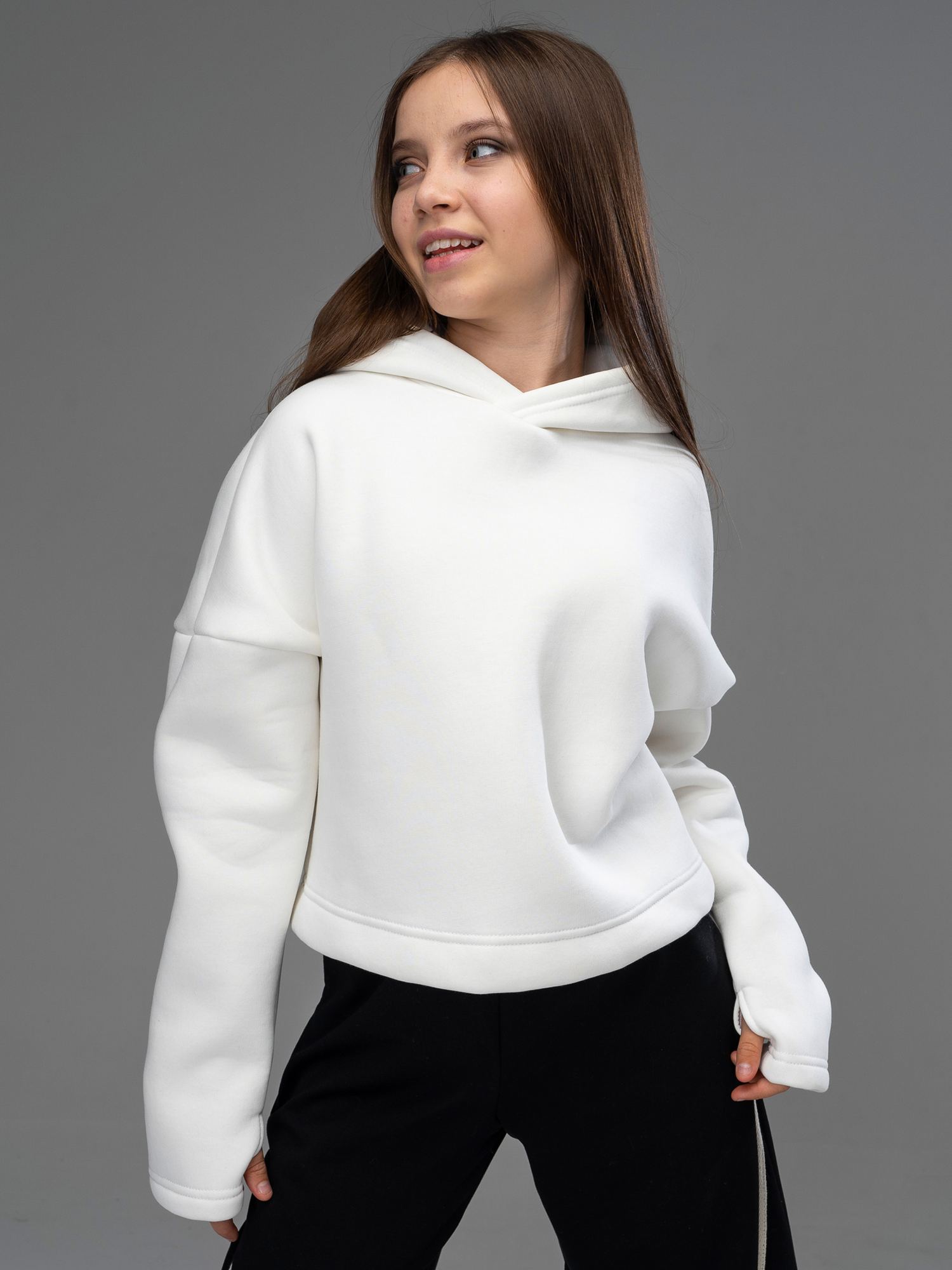 Укороченная толстовка худи из футера с начесом молочного цвета для девочки с длинными рукавами и капюшоном от российского производителя "Looklie" - базовый элемент гардероба. Oversize толстовка выполнена из трикотажа премиального качества - ПЕНЬЕ, с содержанием хлопка более 80%. Очень мягкая, теплая, уютная, приятная к телу, дышащая ткань. Трендовый худи кроп для девочки имеет удлиненные рукава с отверстием для пальца . Укороченная толстовка для девочки — тренд 2024, идеальный выбор для школы, физкультуры, для детского сада праздников и дома. Качество ткани, а также бережный уход (рекомендована бережная стирка при температуре до 30 градусов) обеспечивает длительный срок службы худи, материал не растягивается и не выцветает. Первое время допустимо незначительное отделение ворса - это особенность ткани с начесом, однако, после нескольких стирок, это проходит. Изделие выполнено из трикотажа премиального качества - ПЕНЬЕ, с содержанием хлопка более 80%