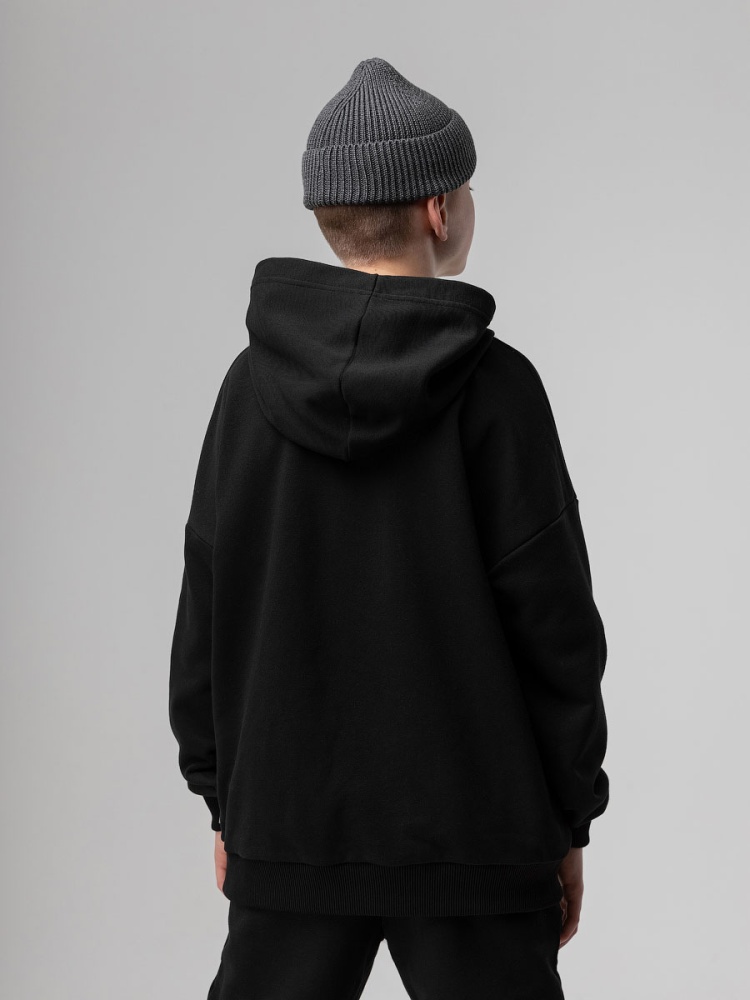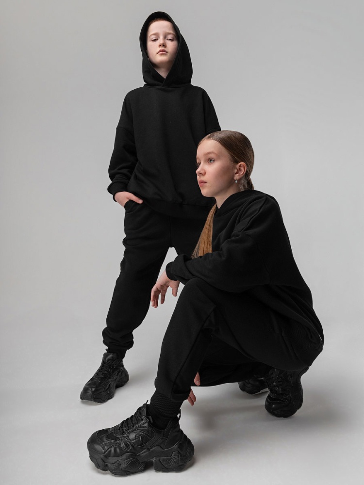 Материал футер трехнитка петля Состав 80% хлопок 20% полиэстер Толстовка для детей школьного возраста. Толстовка свободного силуэта, на притачном поясе по низу изделия, со спущенной линией плеча и втачными рукавами с притачной манжетой. Толстовка с капюшоном. Состав: футер трехнитка петля 80% хлопок 20% полиэстер