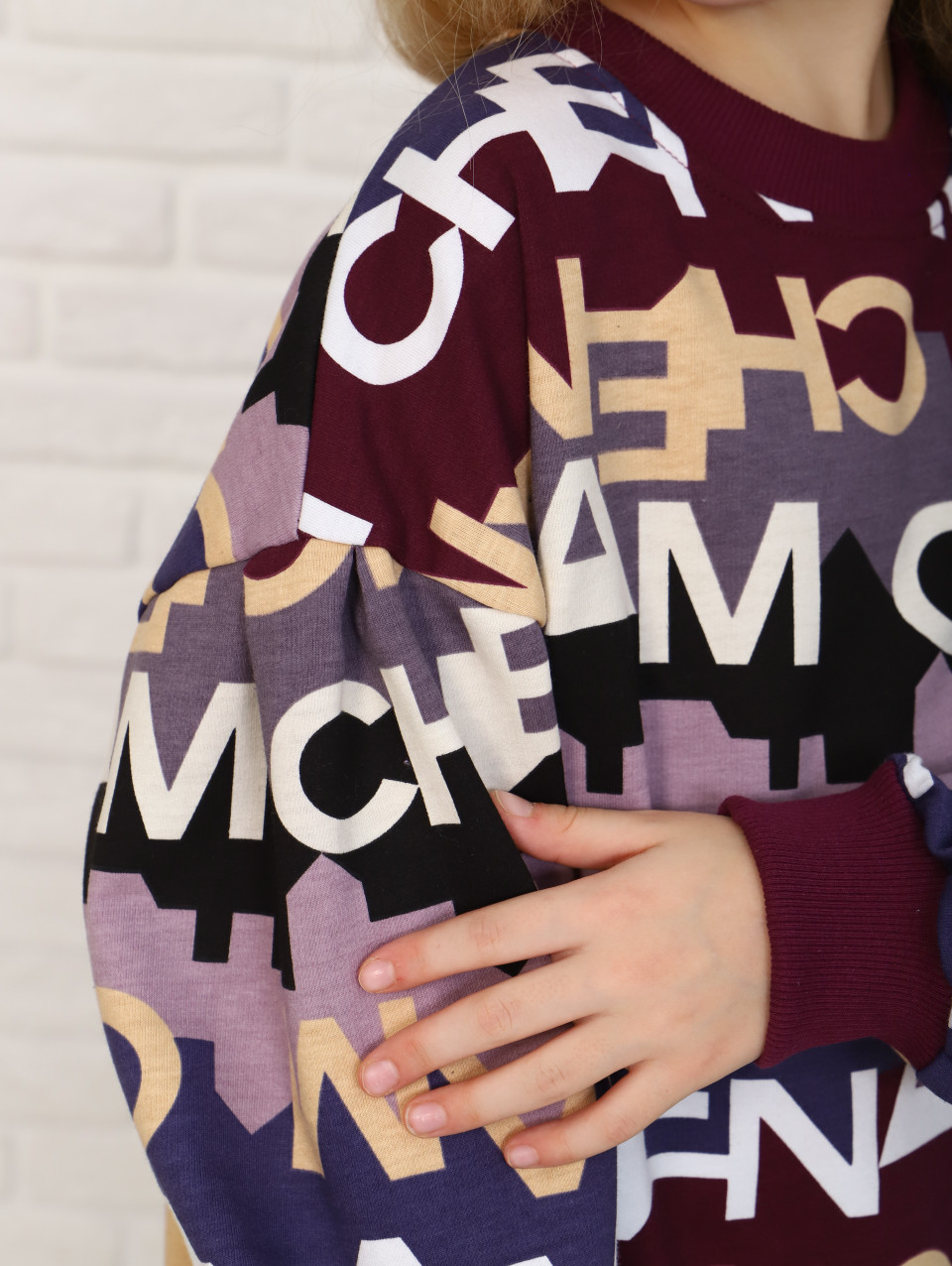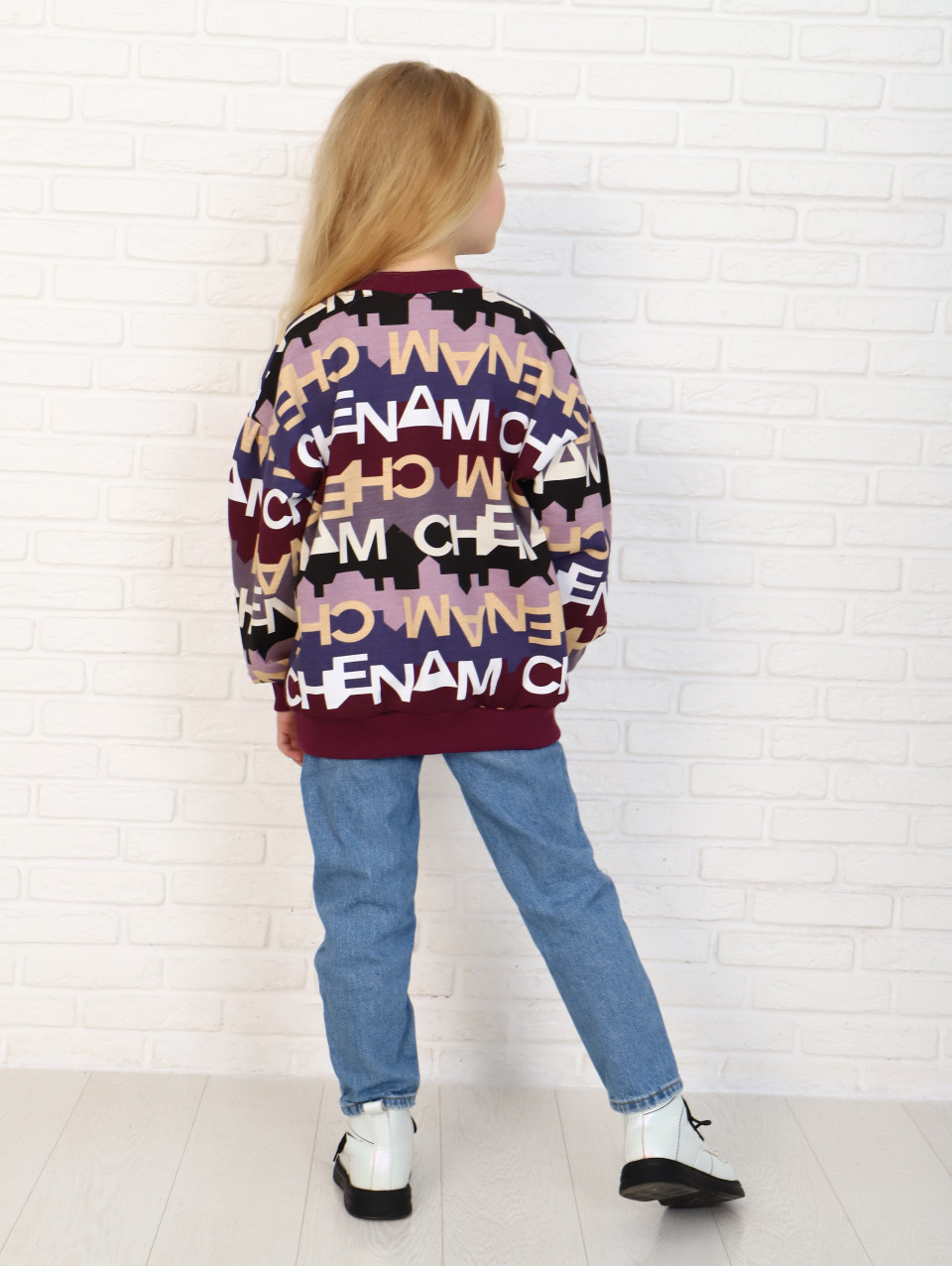 Детская толстовка оверсайз для девочки. Спортивное худи без капюшона, рукав спущенный, втачной, на манжетах. Свитшот отлично подойдет для повседневной носки и прекрасно будет сочетаться с джинсами, брюками, юбками.