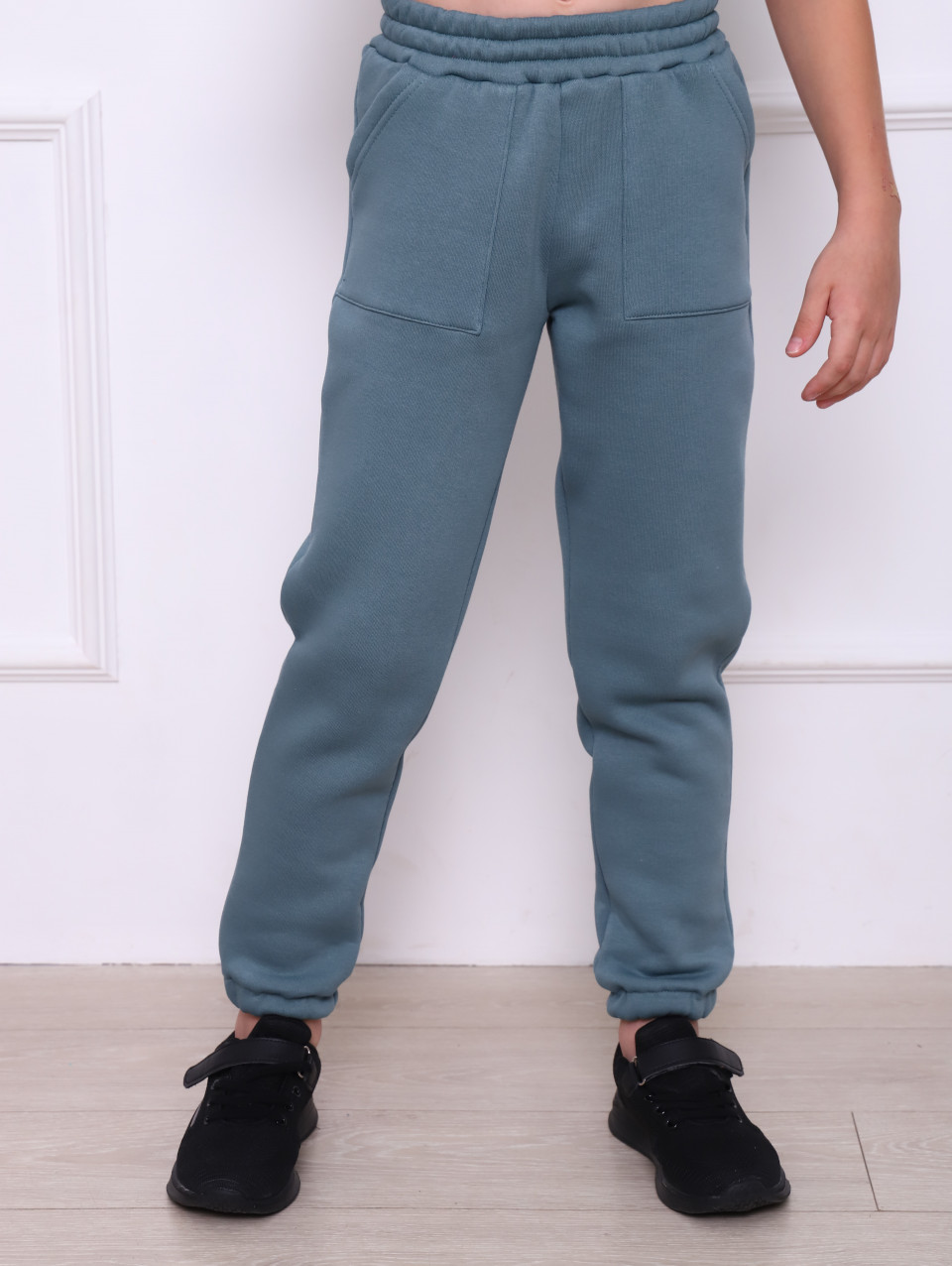 Детские брюки с начесом для мальчиков и девочек. Спортивные утепленные штаны слегка зауженного кроя, пояс и низ брючины на резинке. По бокам удобые глубокие карманы. Теплые джоггеры подойдут для физкультуры, спорта, прогулок, отдыха и дома.