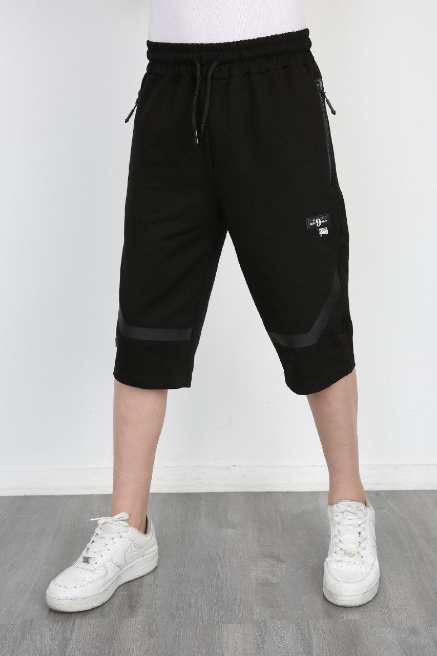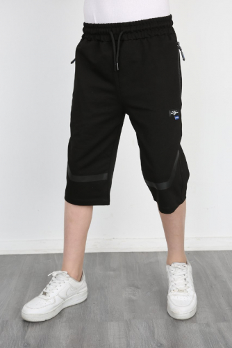 Трикотажные бриджи для мальчика на поясе резинке. Ткань плотная , хорошо держит форму. Прорезные карманы на замке. Дополнены шевроном. По поясу шнурок. В размер. Качество изделия высокое.