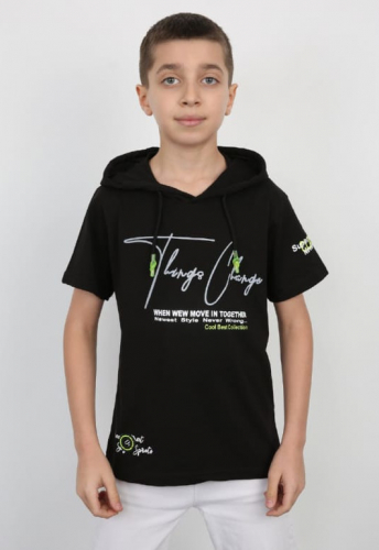 Стильная футболка для мальчика с капюшоном. Дополнена светоотражающим принтом и прорезиненным шевроном.  В размер. Пошив очень хороший.
