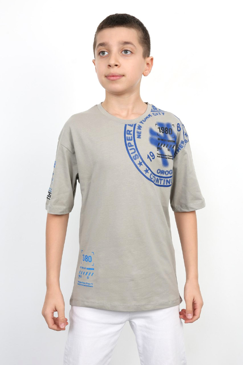 Стильная футболка для мальчика. Дополнена  принтом. В размер.Пошив очень хороший.
