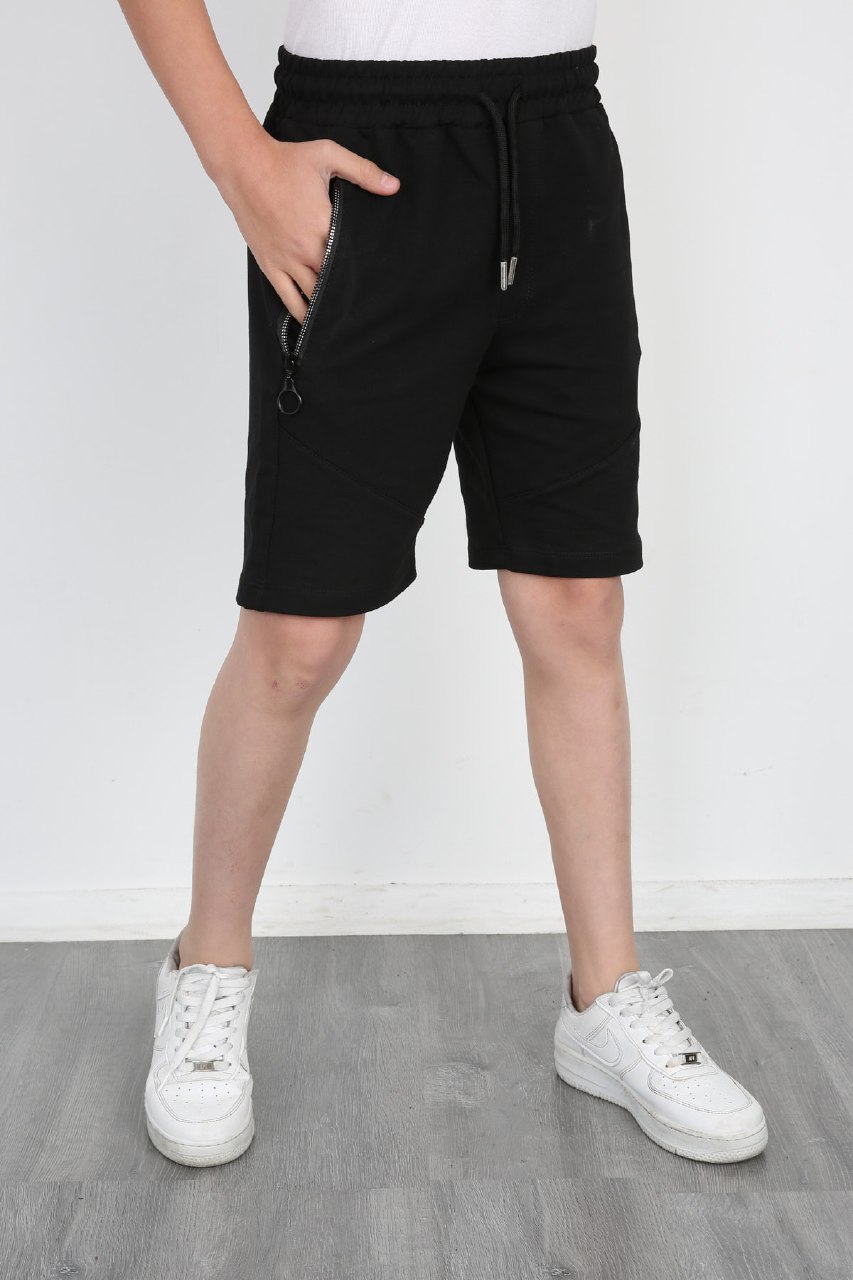 Трикотажные шорты для мальчика на поясе резинке. Ткань плотная , хорошо держит форму. Прорезные карманы на замке. Дополнены шевроном. По поясу шнурок. В размер. Качество изделия высокое.