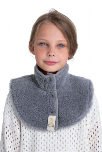 Манишка ДЕТСКАЯ изготовлена из натуральной шерсти, подкладка флис, металлические кнопки, полностью расстегивается, теплая, комфортная, удобно использовать., ВОРОТНИК-МАНИШКА, Воротник-манишка из натуральной овечьей шерсти – самый лучший способ защиты области шеи, горла, верхнего отдела позвоночника., Манишка выполнена из уникального материала – вязанный шерстяной мех на трикотажной основе. Высота ворса 5-7 мм, высокая эластичность и мягкость материала. Она мягко облегает шею, способствует глубокому прогреванию, сохранению тепла.  Благодаря широкой площади охватывает также грудную область и верхнюю часть спины., -оказывает массажный эффект, улучшает микроциркуляции крови в области позвонков.    - профилактика простуды и воспаления горла, при ангине    - профилактика остеохондроза шейных позвонков    - защита горла и груди при работах на холоде, при влажности и сквозняках