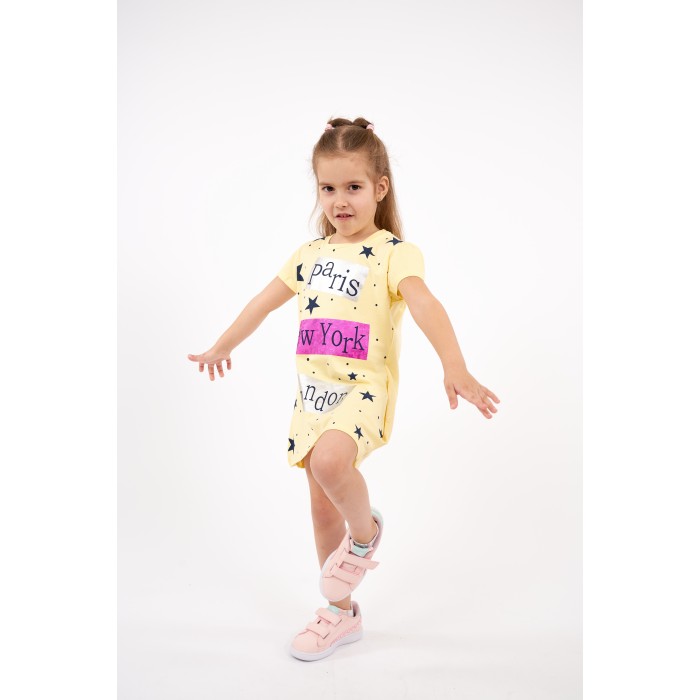 Удобная модель, нежный трикотаж, стильный яркий рисунок , удобные карманы понравятся девочкам.