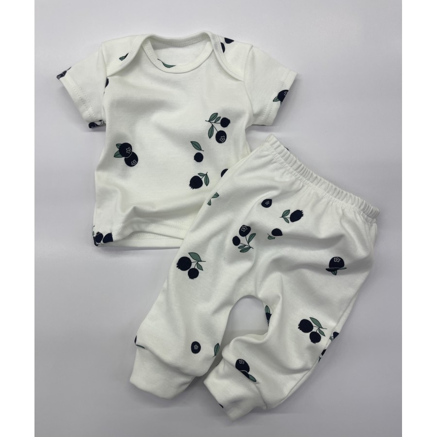 Комплект из интерлока в качестве премиум. Состоит из футболки с окантованным плечиком и ползунков на манжете.