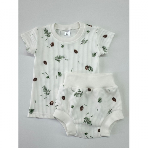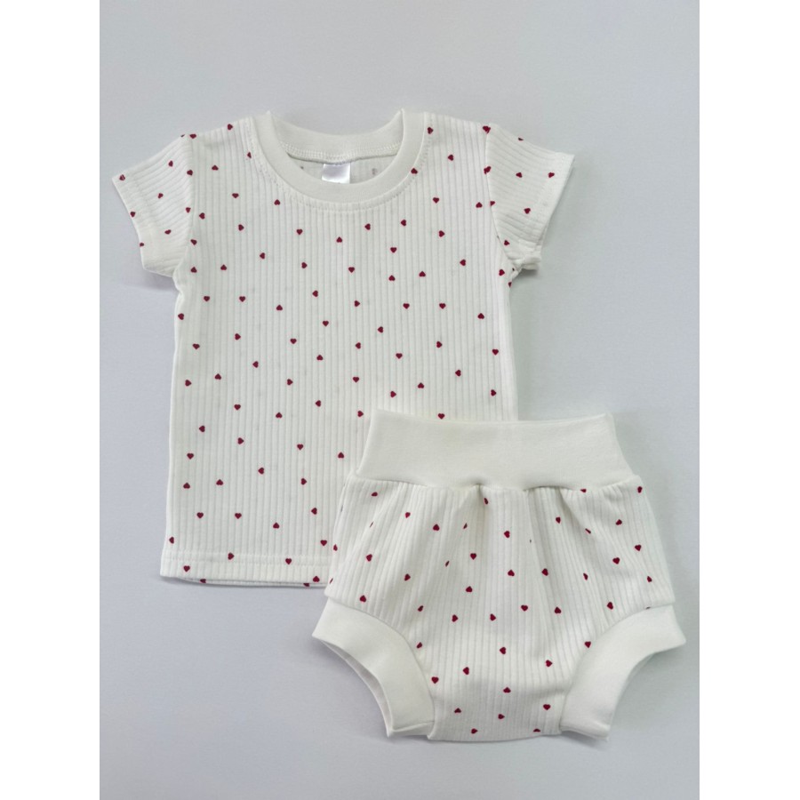 ..81-5 ИГЛ Комплект футболка + трусы на широком поясе из интерлока, "Сердечки/молоко".