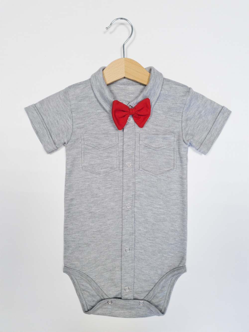 Великолепное боди для маленького принца. Оно имеет короткий втачной рукав, а горловина обработана воротником, что обеспечивает комфорт и защиту нежной кожи малыша. Застежки-кнопочки расположены по всей длине спереди и между ножками, обеспечивая удобство и простоту одевания.